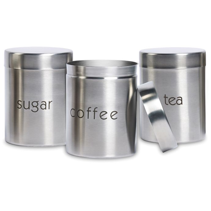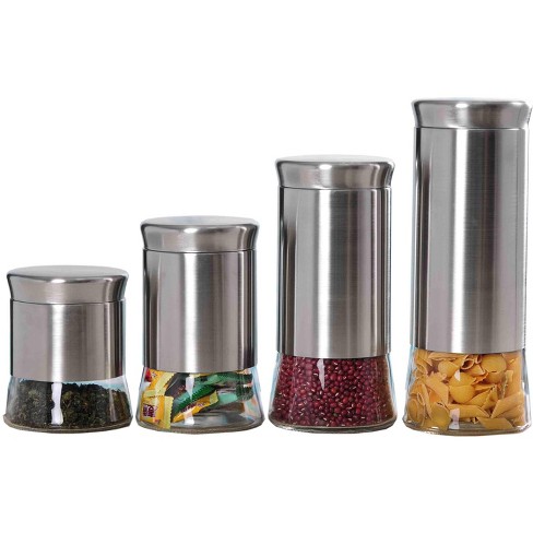 Estilo 4 piece brushed stainless steel and glass canisters with window walmart usa. Keep your foods fresh in this set of stainless steel canisters. On sale for $119.00 original price $131.00. Shop for stainless steel kitchen canisters at bed bath & beyond. Canister set, cast ceramic jars, stainless steel lids and spoon measures, free shipping, only 59.99 each set.