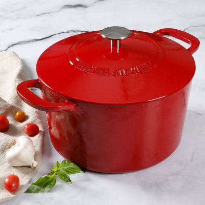 The martha stewart dutch oven 8 qt washes up easily nicely with no stains remaining behind. Cast iron works on all types of stovetops. If you had to buy one piece of enameled cast iron, there's really no debate: I've spent some time this morning reading through articles, forum threads. Gas, electric, glass stovetop and induction safe.